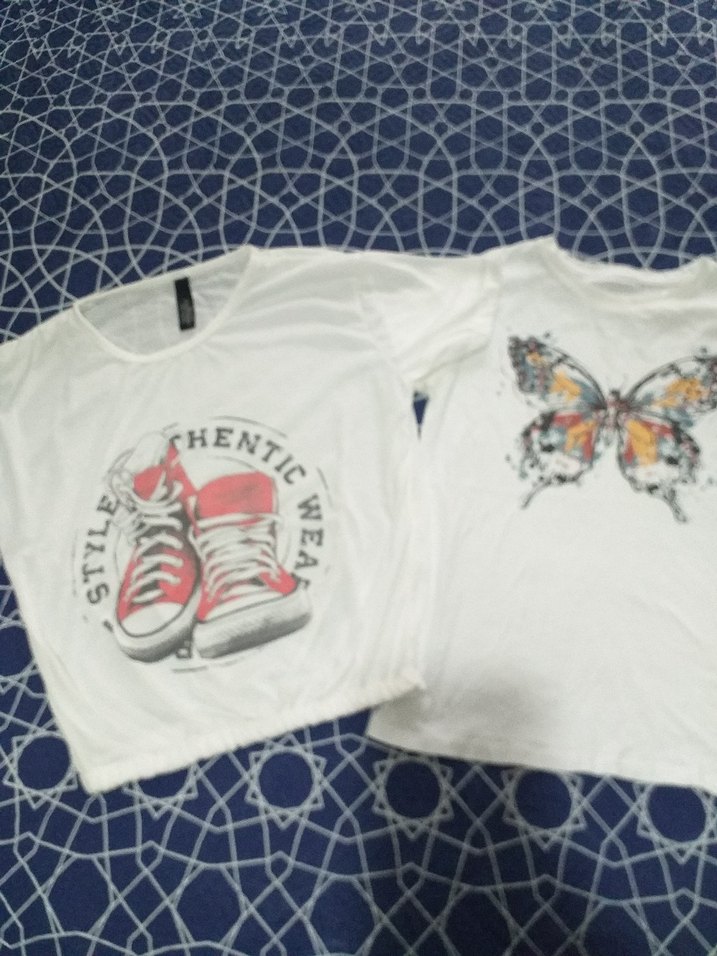 Renkli baskılı desenlere sahip, kısa kollu, bol kesim beyaz yuvarlak yaka ve sentetik kumaştan yapılmıştır.