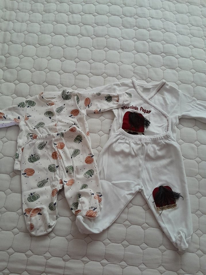 Beyaz Baskılı Uzun Kollu Bebek Hastane Kıyafeti