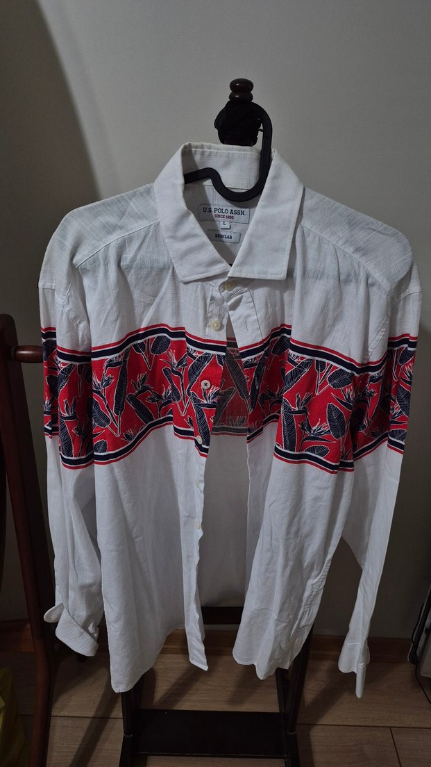 Pamuk kumaştan yapılmış, uzun kollu ve düğmeli beyaz erkek gömlek. Göğüs ve kollarda koyu renkli baskılı desenler bulunur. Salaş kesim ve normal midi boyda, günlük bohem tarzına uygundur.