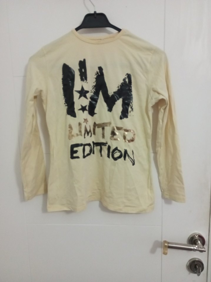 Pamuklu, sarı renkli, uzun kollu ve baskılı desenli kız tişörtü. yuvarlak yaka ile rahat bir sokak stili sunar.
