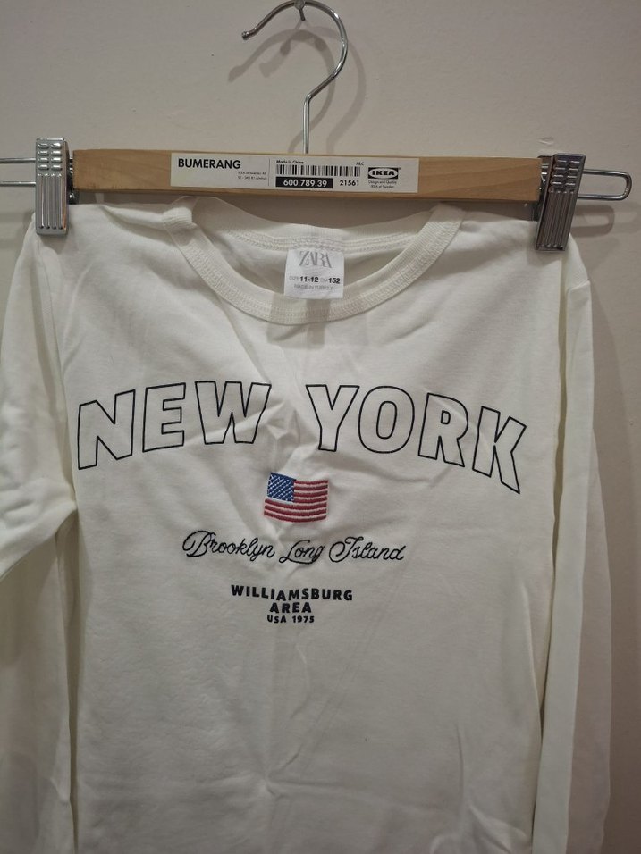 Pamuk kumaştan, beyaz renkli, baskılı 'New York' yazılı, uzun kollu ve dar kesim kız tişörtü. Rahat ve şık görünüm sağlar.