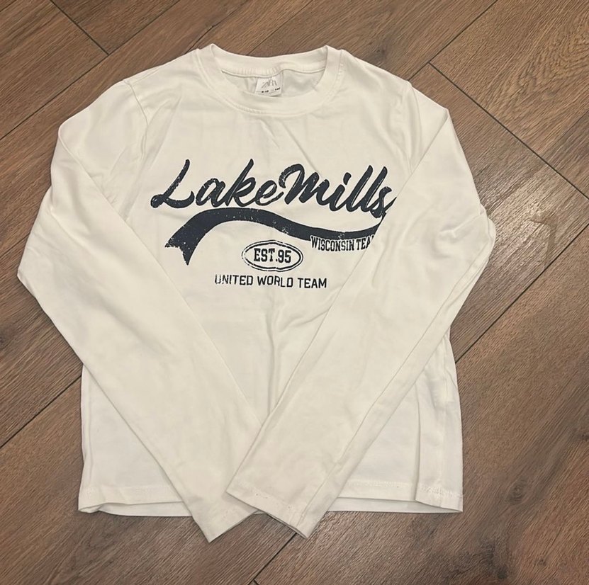 Yumuşak pamuklu, uzun kollu, beyaz renkli kız tişörtü. Baskılı Lake Mills deseni ve salaş kesimi ile rahat bir kullanım sağlar. Sokak modasına uygun.