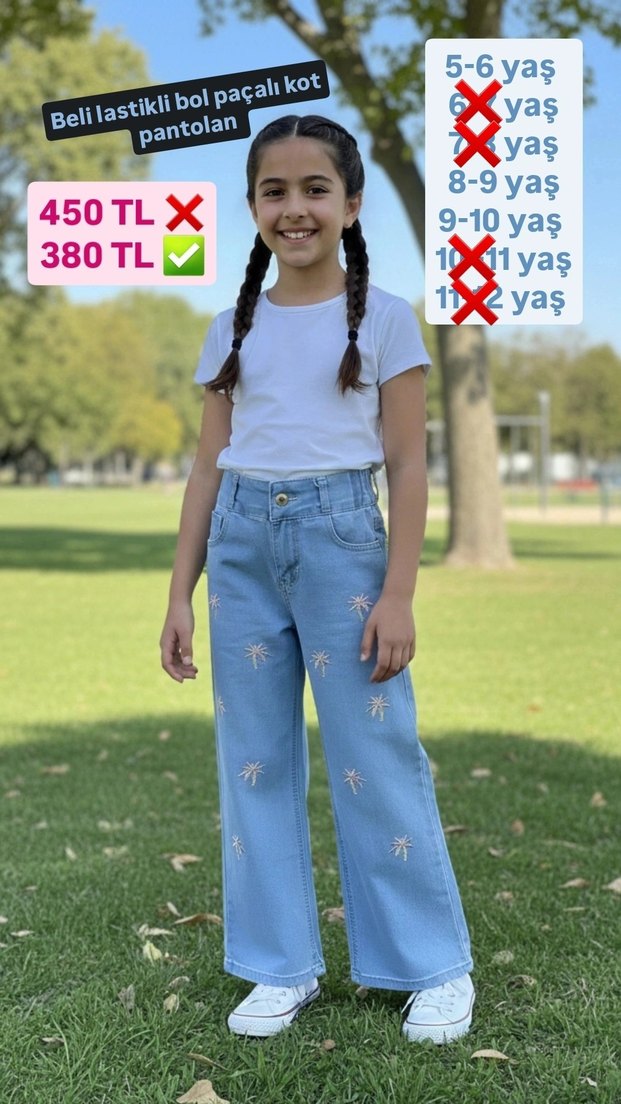 Beyaz Batik Desenli Rahat Kesim Kız Kot Pantolon