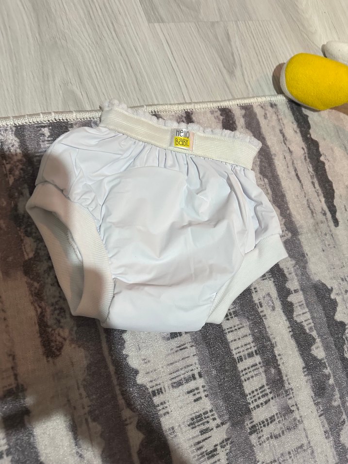 Beyaz, elastik bel bantlı ve yumuşak kenarlı bebek alıştırma külotu. Tuvalet eğitimi sürecinde kullanılır.