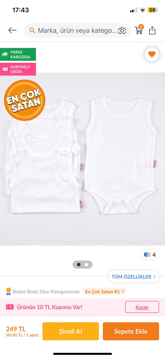 6-9 ay pamuklu bebek zıbın . Trndyl uygulamasından alındır paket içeriği: toplamda 5 adet pamuklu beyaz zıbın ürün hiç hiç giyilmedi denenmedi bile alana hayırlı olsun Yumuşak kumaştan, çıtçıtlı beyaz bebek atlet body. Düz tasarıma sahiptir, kuponlu ürün.