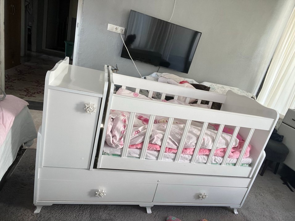 Beyaz Bebek Beşiği ve Altı Çekmeceli
