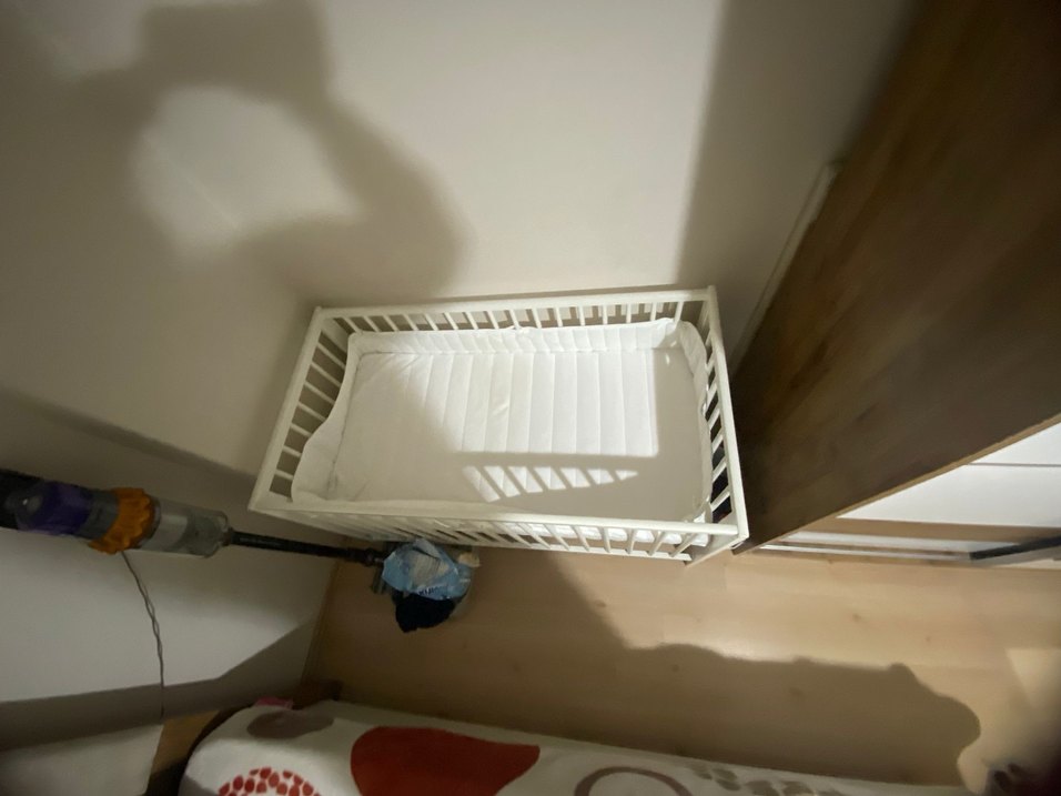 Beyaz renkli, çıtalı yanlara sahip bebek beşiği. İçinde yumuşak minder bulunur, bebekler için konfor sağlar. ️İki kademelidir. Hiç bir sıkıntısı yoktur.