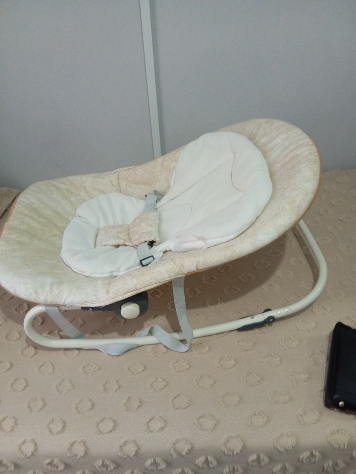 Bebekler için yumuşak kumaşlı ve güvenli kayışlı beyaz pastel renkte beşik.