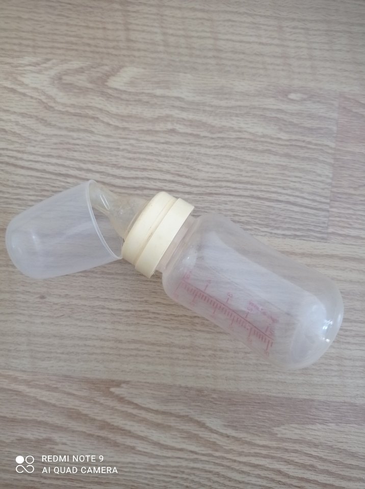 Beyaz kapaklı bebek biberonu, ölçü çizgileri ile doluluk takibi kolaydır. Güvenli ve şeffaf malzemeden üretilmiştir.