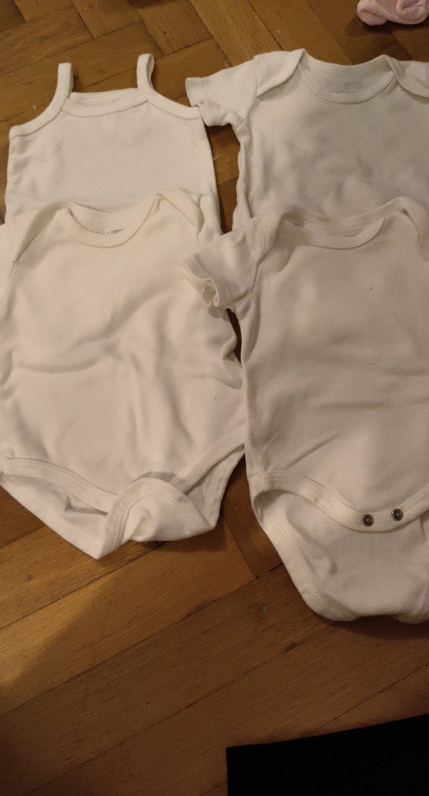 Yumuşak pamuktan yapılmış, kısa kollu ve yuvarlak yakalı beyaz bebek bodyleri. Günlük kullanım için rahat ve sade.