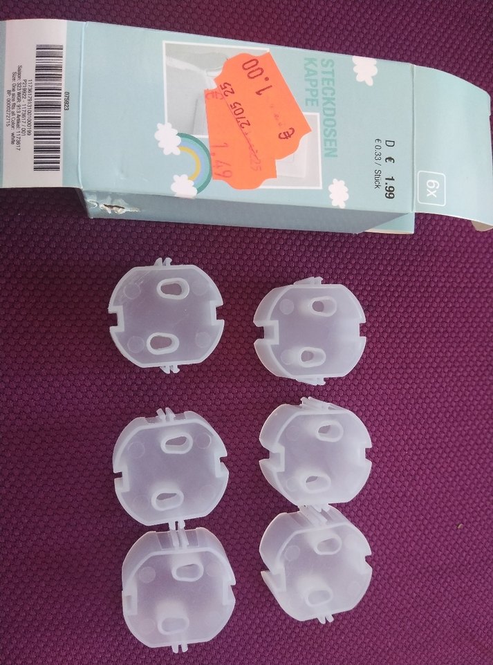 Altı adet beyaz plastik çocuk güvenlik priz kapağı. Kolay takılır ve elektrik çarpmasını önler. elimde 2 paket var. 1 paketin içinden 6 aset çıkıyor. toplam 12 adet var