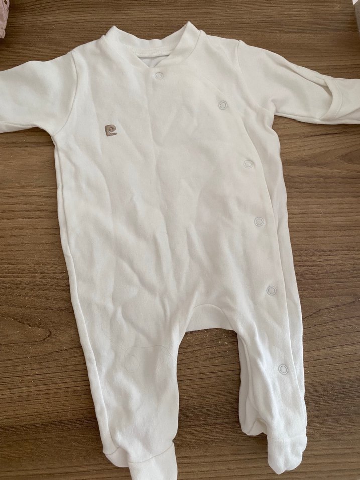 Yumuşak ve sıcak beyaz bebek hastane tulumu, uzun kollu ve düğmeli kapanışlıdır. Düz tasarımıyla yenidoğanlar için rahatlık sağlar.