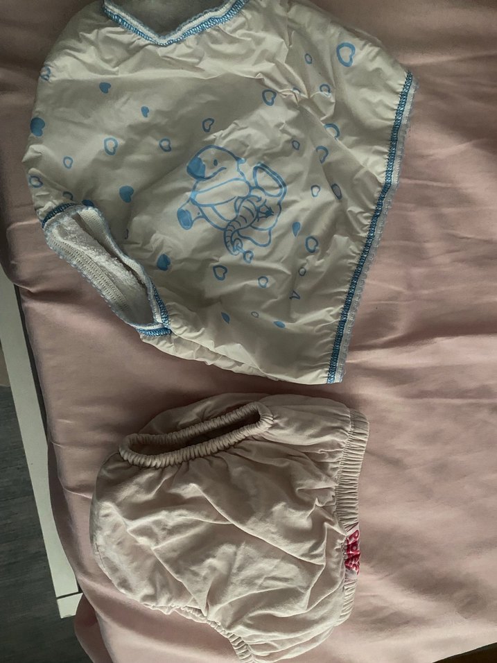 Yumuşak kumaştan yapılmış, biri mavi fil ve küçük mavi kalplerle süslenmiş iki parçalı beyaz pastel tonlarda çocuk iç çamaşırı seti. Uygun fiyata ekledim.