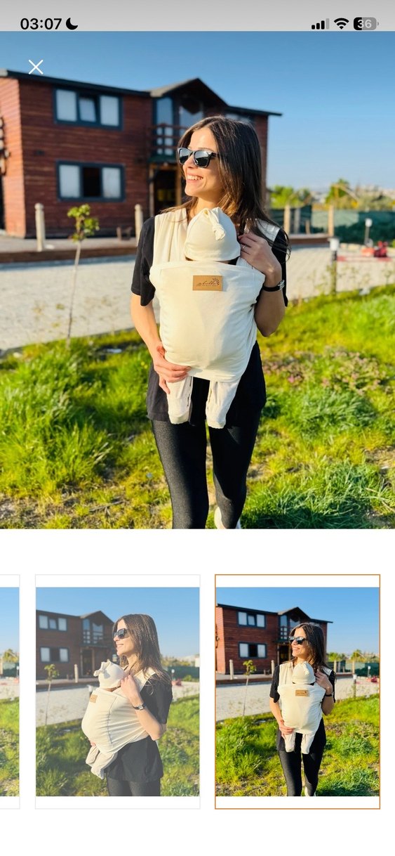 Yumuşak ve hafif beyaz bebek kanguru sling, bebeği güvenle taşımak için tasarlanmıştır. Eller serbest kalır. Dış mekan kullanımı için uygundur.