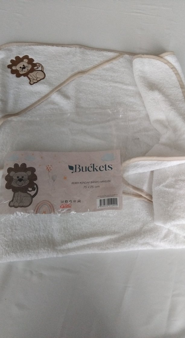 Baskılı aslan deseni ve yumuşak emici kumaşa sahip pastel kahverengi bebek kundak banyo havlu 75x75 cm ölçülerindedir. Marka: Buckets hijyen nedeniyle iade kabul olmamaktır
