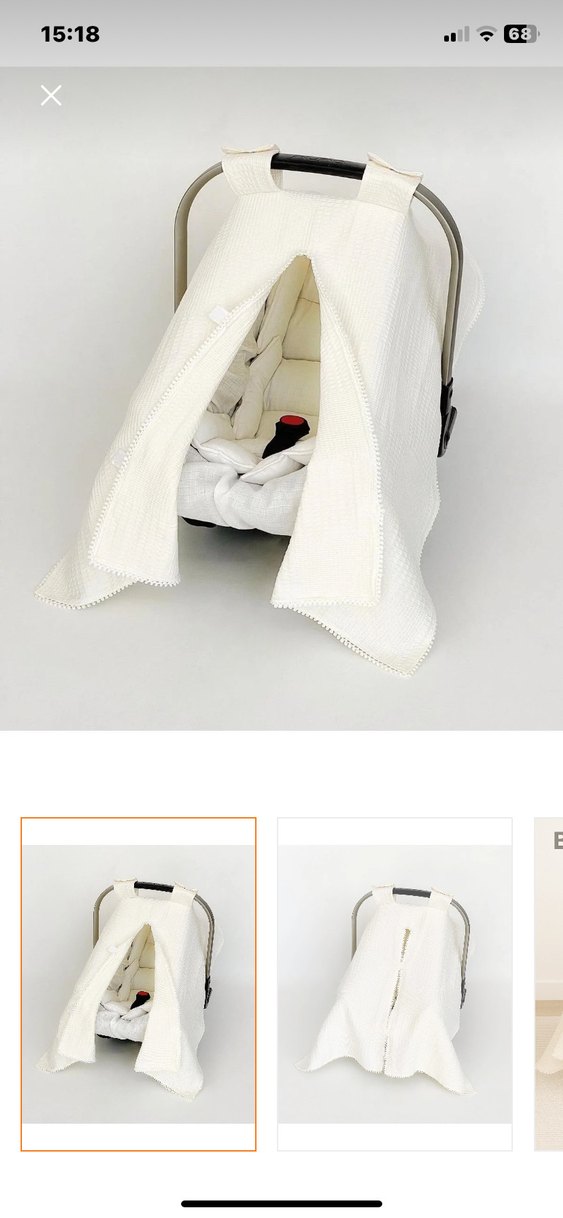Beyaz bebek oto koltuğu örtüsü, yumuşak kumaşıyla bebeğinizi korur ve gizlilik sağlar. Koltuğa tam oturur, konfor sunar.