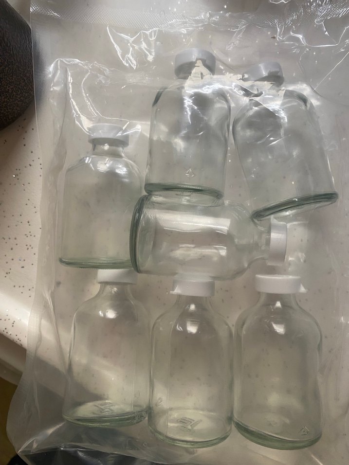Beyaz kapaklı, şeffaf camdan yapılmış hafif bebek şişesi seti. Beslenme için uygun ve sade tasarımlı.