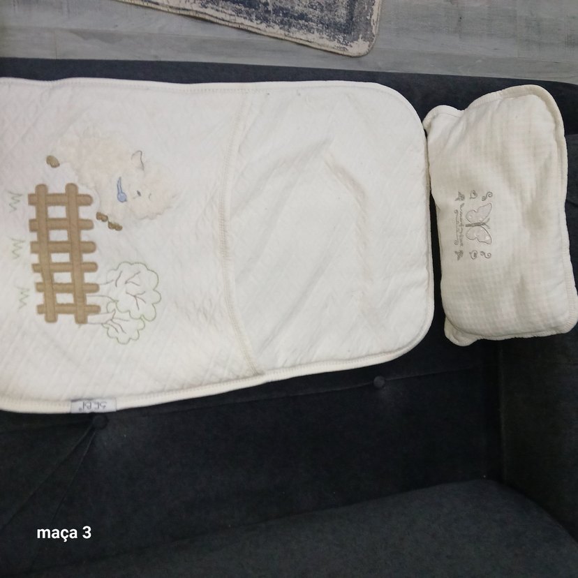 Yumuşak ve sıcak kumaştan beyaz bebek uyku minderi ve yastık seti, sade ve desensiz tasarıma sahip, hafif süslemeler içerir. ️