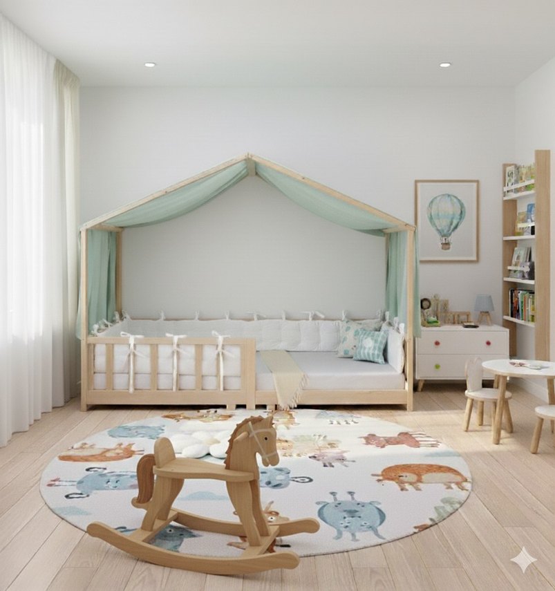Yumuşak sentetik kumaştan yapılmış beyaz bebek yatak koruyucu minder, beşiğe bağlanabilen çoklu bağcıklarla konfor ve güvenlik sağlar. ️