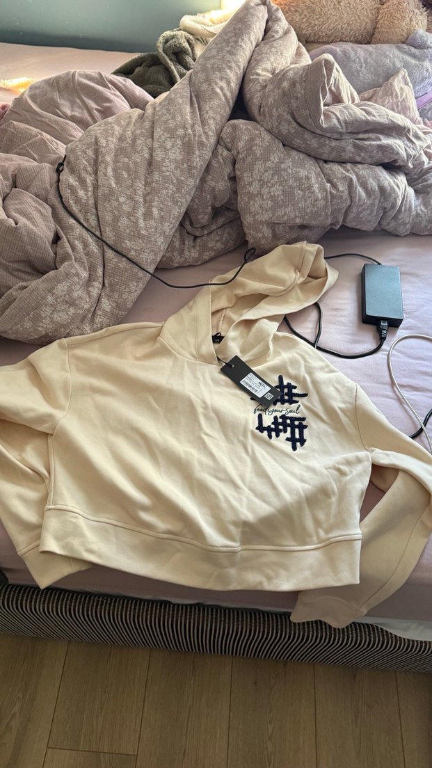 Beyaz - BEJ Kapüşonlu ithal Kadın Sweatshirt alt üst takım