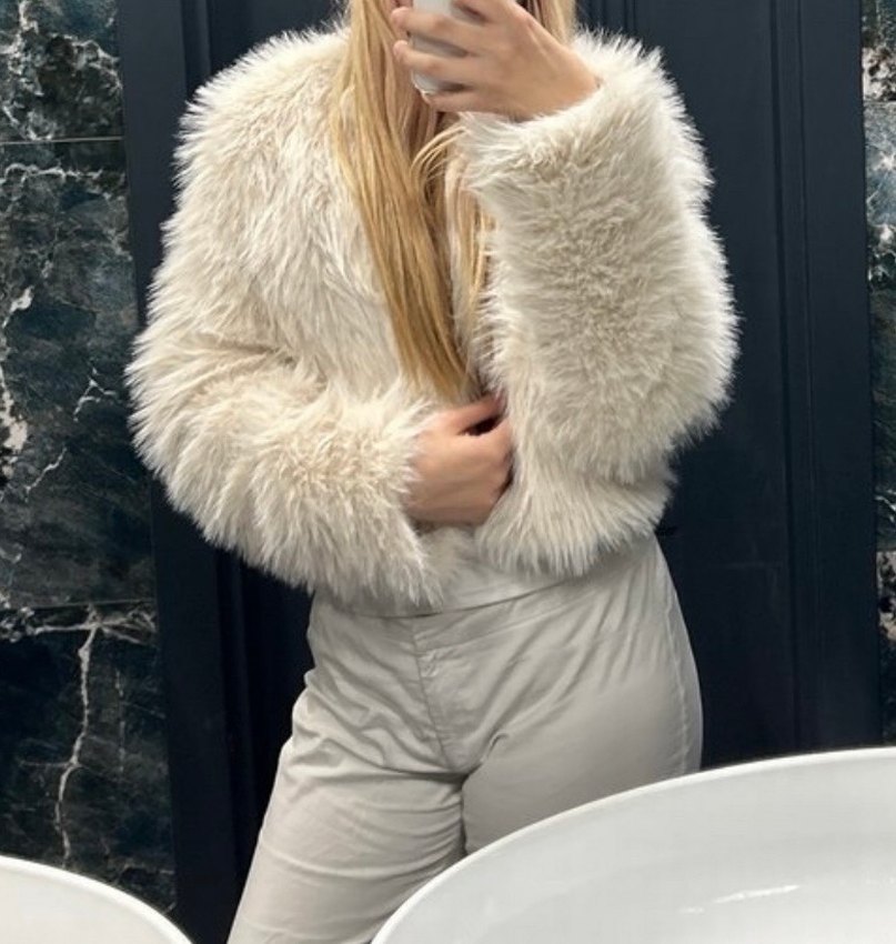 Beyaz kürk detaylı, yün kumaştan, straplez ve uzun kollu, vücuda oturan midi uzunlukta kadın ceketi. Rahat ve normcore tarzda, günlük kullanıma uygundur. ✨