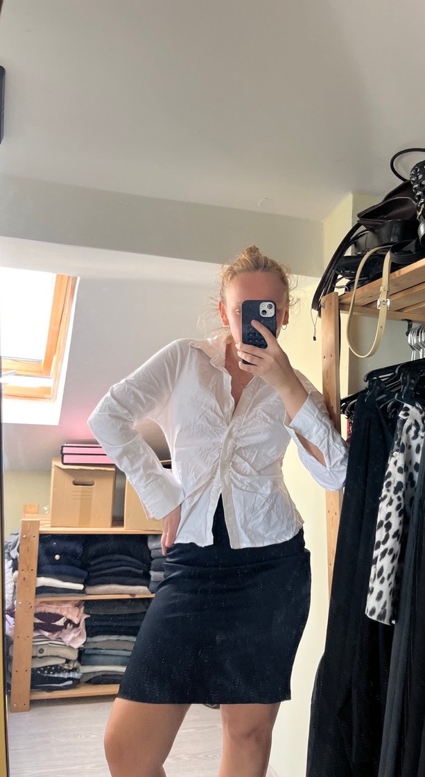 Beyaz belden büzgülü gömlek