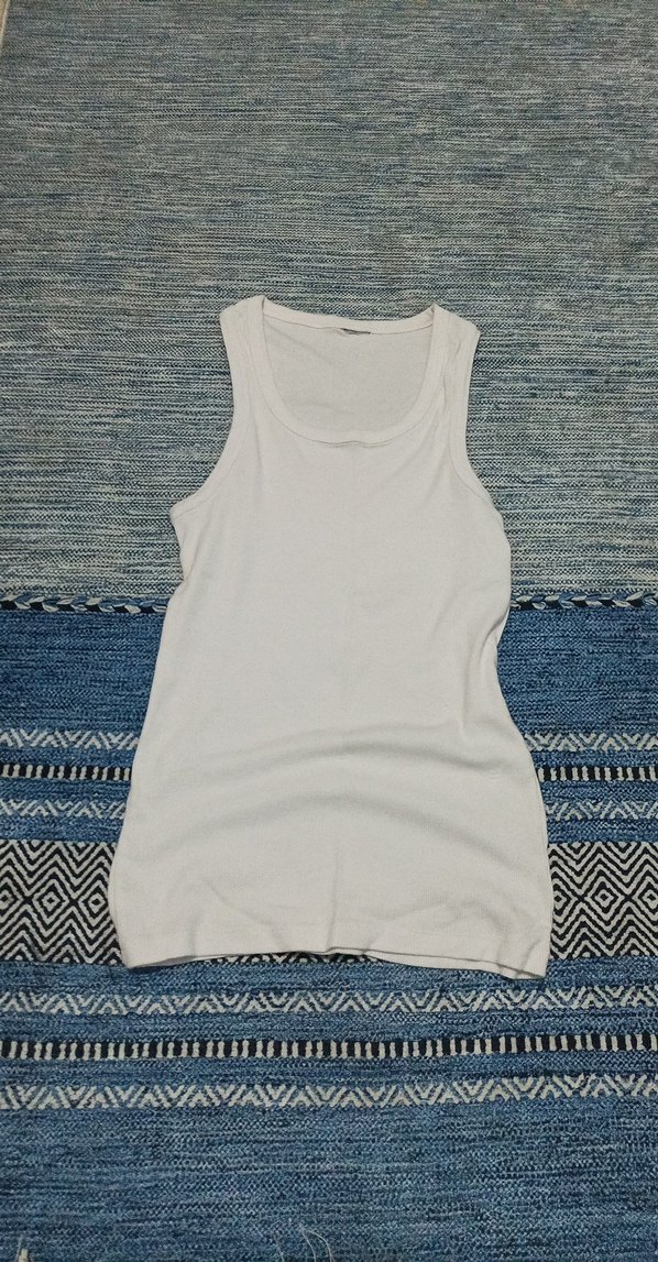 Pamuklu, beyaz, kolsuz ve yuvarlak yakalı, günlük kullanıma uygun, vücuda oturan atlet.