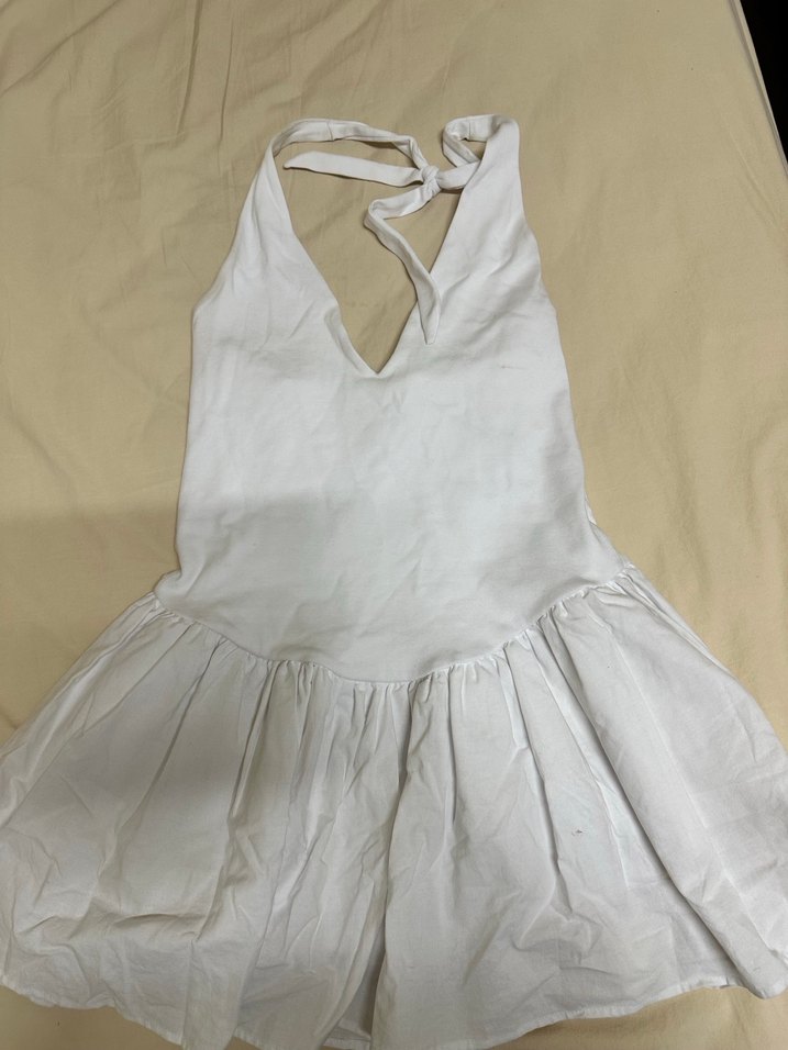 Beyaz bershka dekolteli elbise