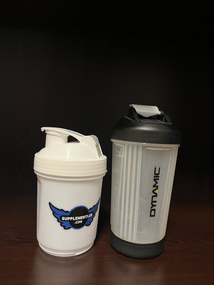 Beyaz kapaklı besin kabı ve siyah kapaklı karıştırıcı şişe, takviye karışımları için uygundur. 2 adet fıyattır hiç Bır sorunu yok