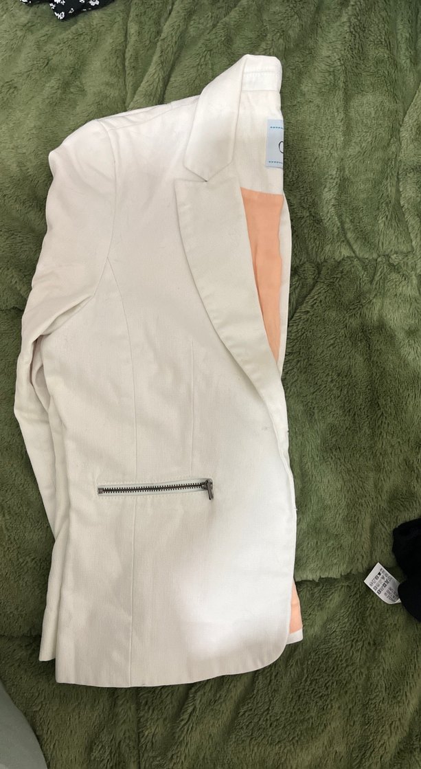 beyaz blazer . Notlu yaka ve fermuarlı detaylara sahiptir. Normal kesim, midi boy ve hafif sentetik kumaştan üretilmiştir. Minimalist sokak stili, günlük kullanıma uygundur.