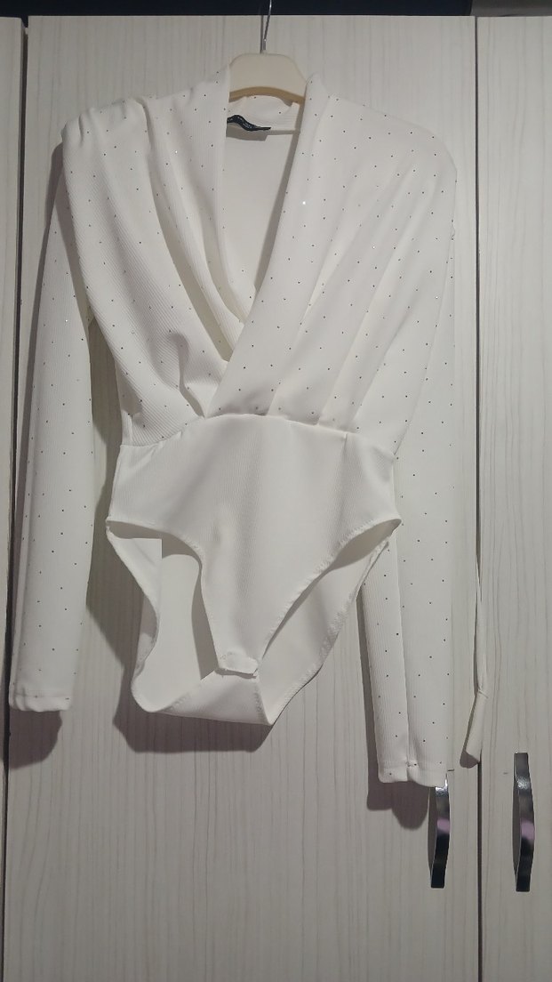 Beyaz, uzun kollu, şık bir bluz. hiç giyilmedi tertemizdir