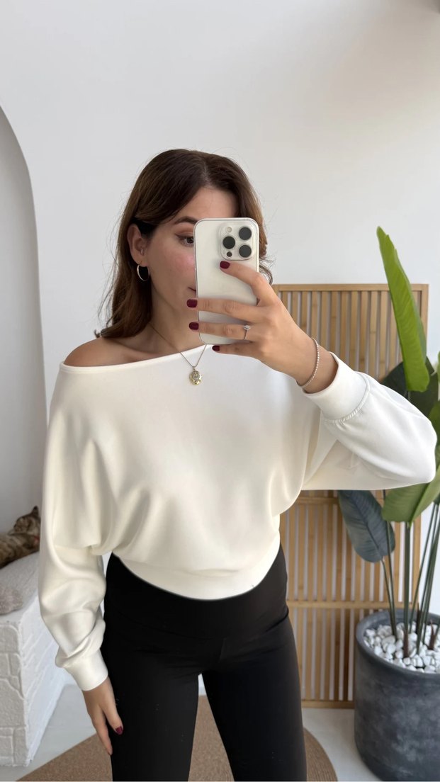 Beyaz Kayık Yaka Oversize Omzu Açık Bluz S M bedenleri mevcuttur #zara #bershka #kayık #yaka #siyah #bluz