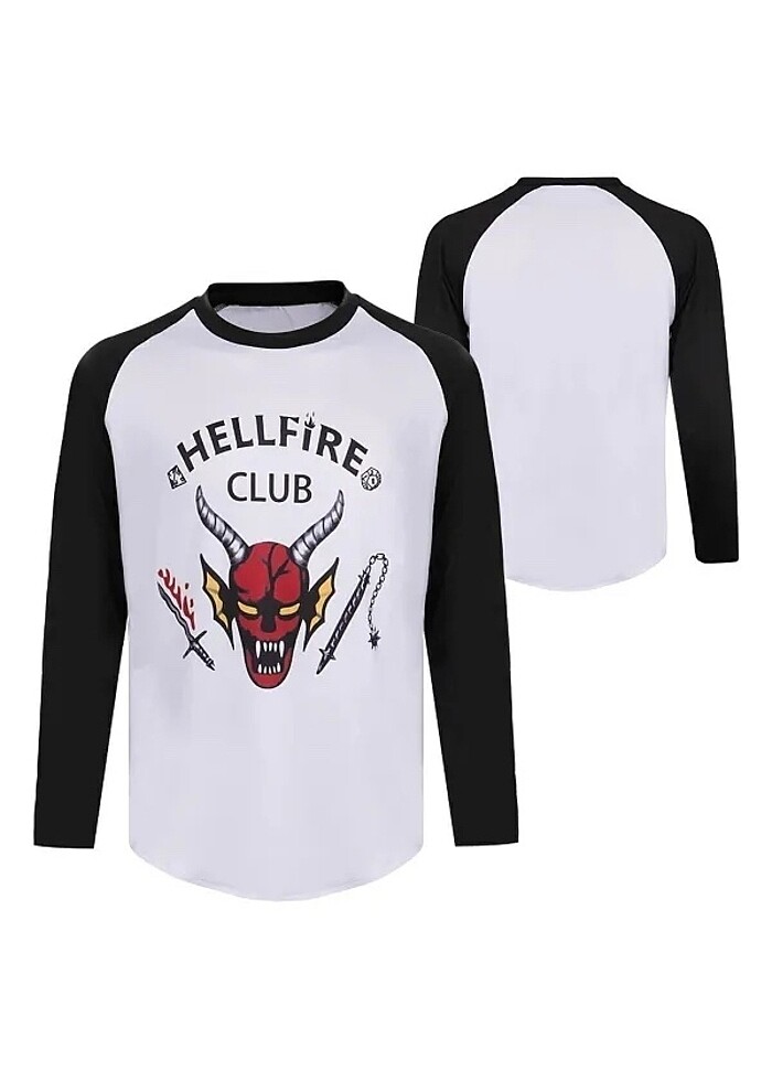 Beyaz, kolları siyah, baskılı bluz. Beden:M marka: köstebek