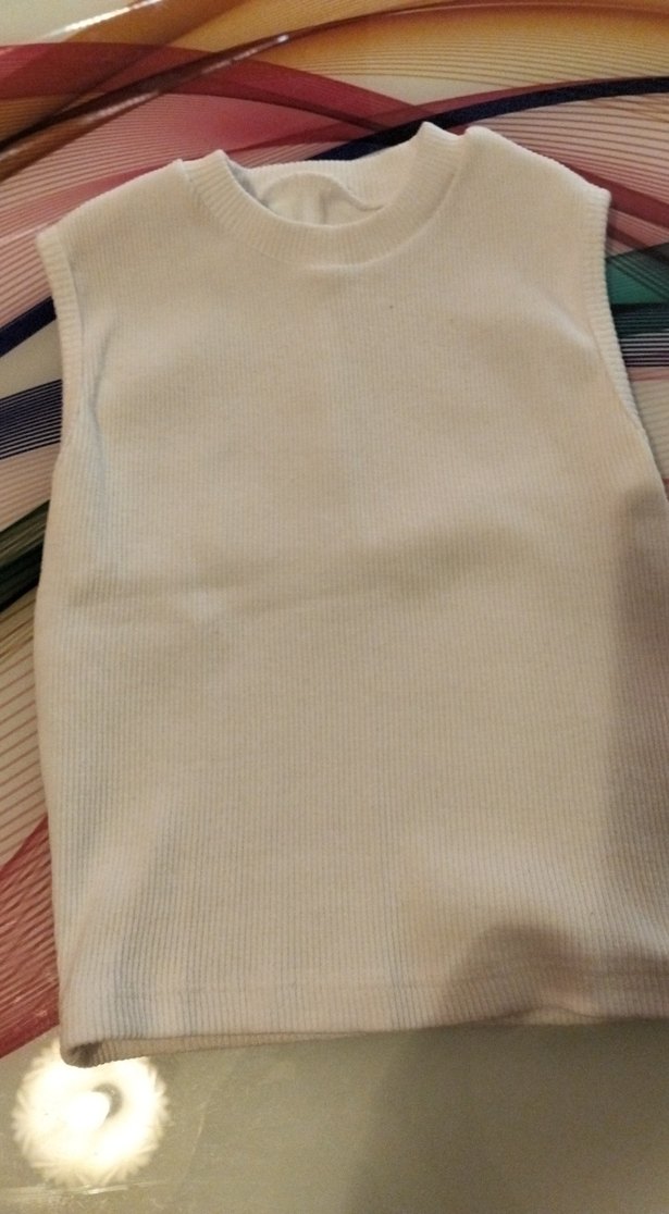 Beyaz renkte, kolsuz yuvarlak yaka
