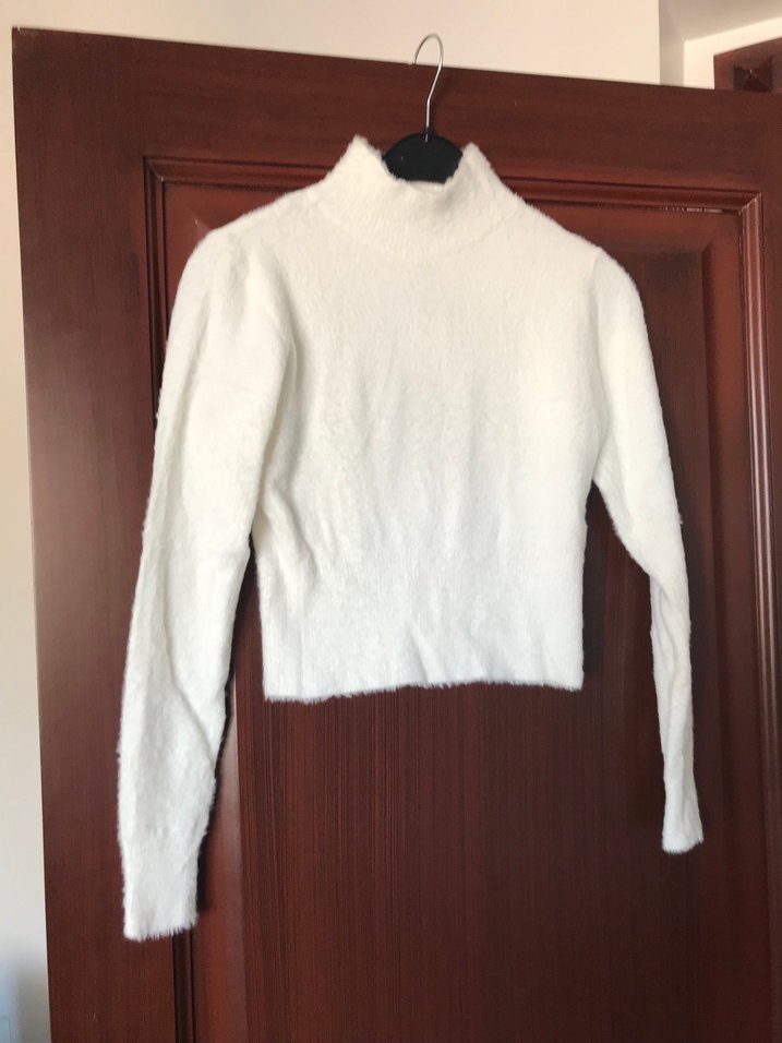 Beyaz boğazlı, uzun kollu, örgü dokulu ve fitted kesime sahip kadın kazak. Yumuşak ve sıcak kumaşıyla rahat ve günlük kullanıma uygun. Boy 45 cm iki kol 42 cm