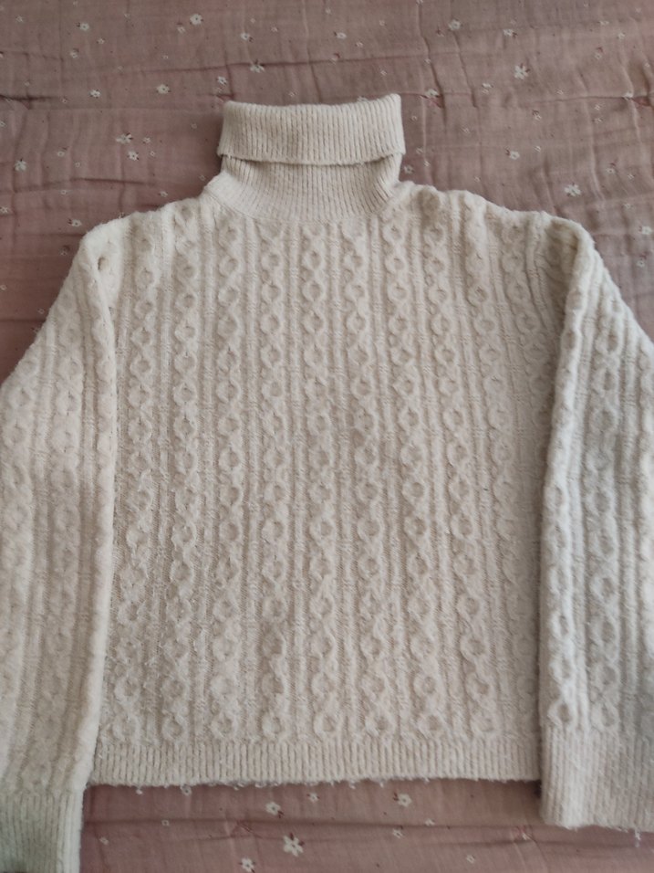 Kız çocuk için örgü dokulu, boğazlı ve uzun kollu beyaz kazak. Rahat kesimi ve sade normcore stiliyle günlük kullanıma uygundur.