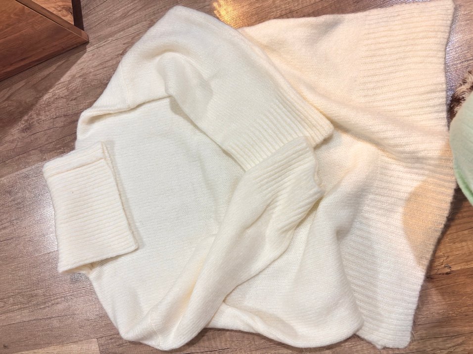 Beyaz renkli, boğazlı ve uzun kollu örme kadın kazak. Rahat kesimi ve midi uzunluğu ile günlük kullanıma uygundur.