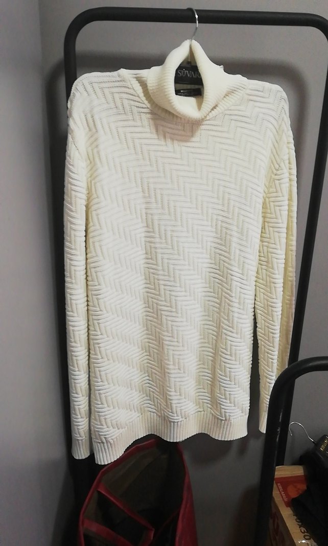 Beyaz Boğazlı Triko Kazak