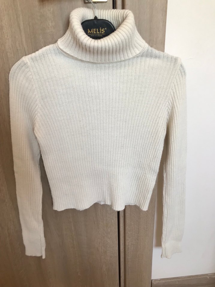 Beyaz Boğazlı Triko Kazak