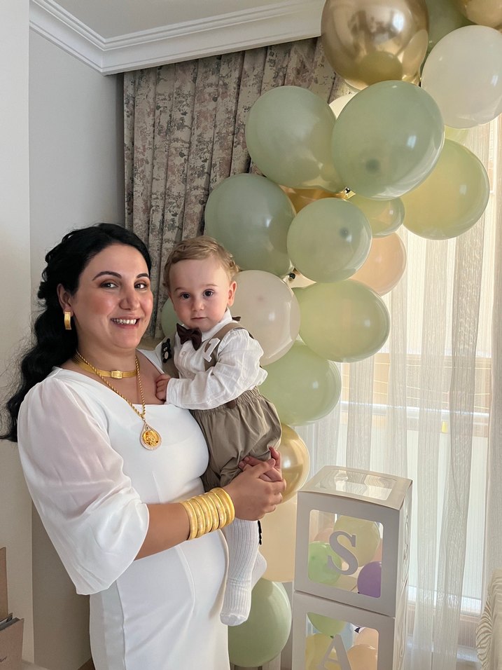 Beyaz elbise , halter yaka ve uzun balon kollara sahiptir. İpek gibi kumaşta bol kesimdir, bohem tarzda düğün için uygundur. Midi boyu ve sade tasarımıyla dikkat çeker.