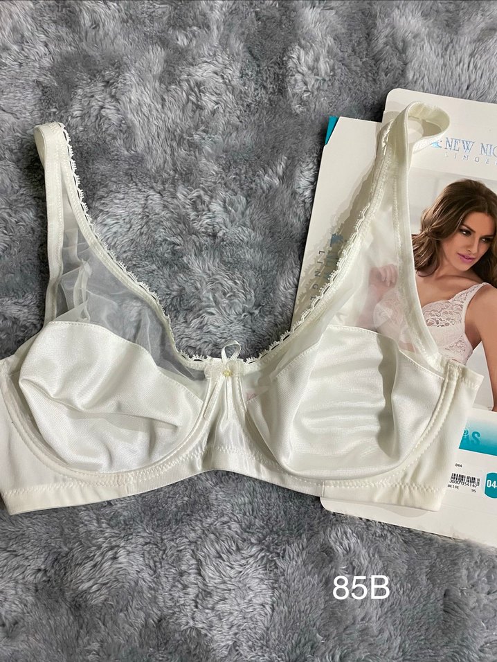 Beyaz bohem tarzda, desensiz ve hafif kumaştan rahat sütyen. 85B beden, yeni. Konforlu kullanım için uygundur.