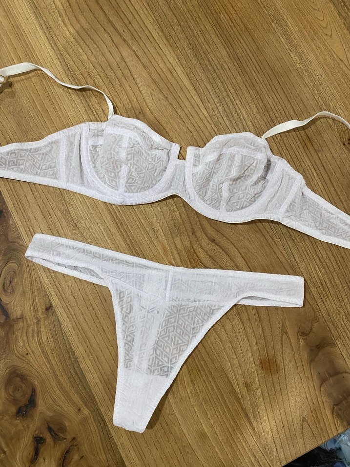 Beyaz Bohem Minimalist Sütyen ve Külot Takımı