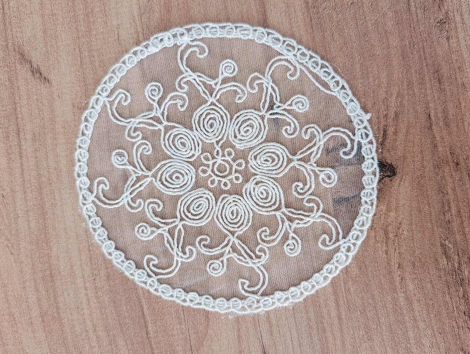 Şeffaf kumaş üzerine işlenmiş beyaz bohem nakışlı dantel motifi. Zarif tasarımıyla el işçiliğini ön plana çıkarır. ✨ 6'lı sunum peçetesi