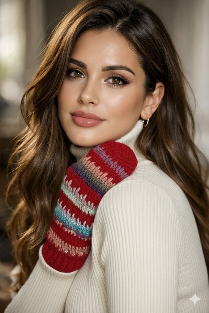Bohem tarzda, hafif beyaz renkli örgü kadın eldiveni. Rahat ve yumuşak örgü kumaşıyla şık ve konforlu.