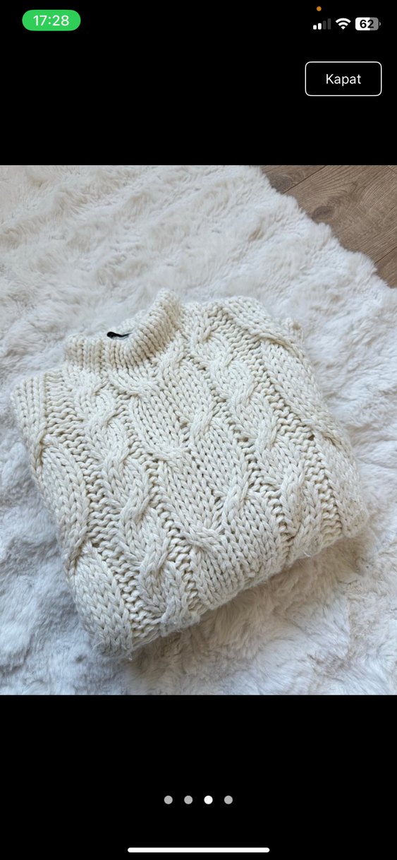 Beyaz renkli, bohem tarzda örgü kadın kazak. Boğazlı yaka ve uzun kollu, bol kesim ve midi uzunlukta, rahat ve sıcak tutar.