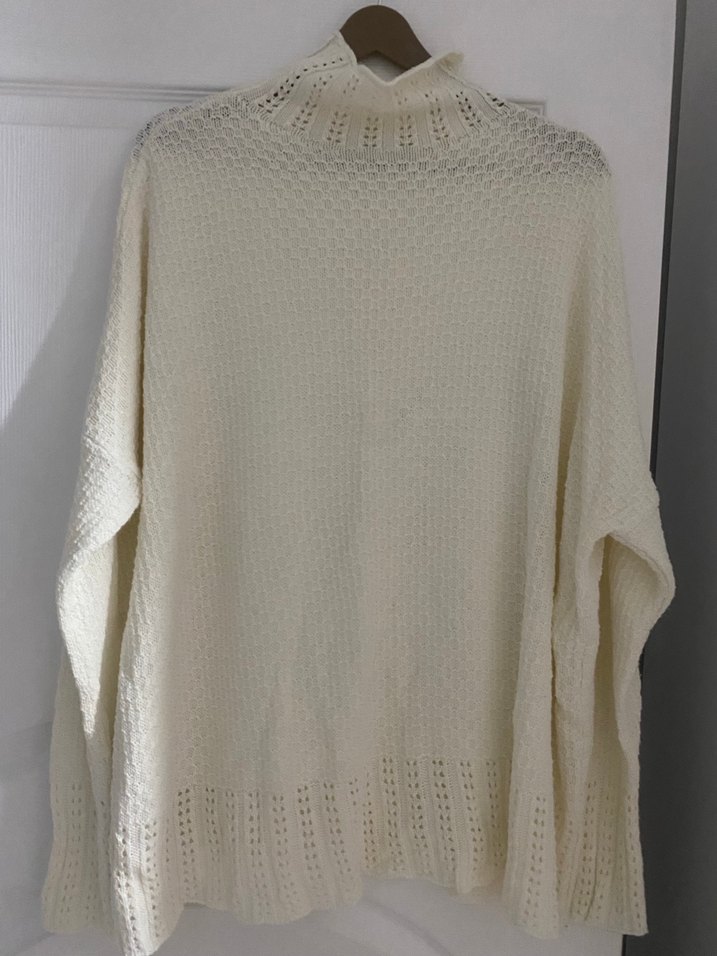Beyaz renkli, yüksek yakalı ve uzun kollu kadın kazak, yumuşak örgü kumaştan üretilmiştir. Rahat ve sade bohem tarzıyla günlük kullanıma uygundur.. Standart bedeni olup 38-42 beden arası çok rahat uyumludur .örgü deseni çok şık , tayt ve pantolon üsünde güzel duruyor..