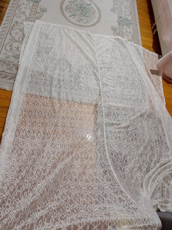 Beyaz renkte, bohem tarzda, hafif ve desensiz dantel tül perde, iç mekanlara zarif bir dokunuş katar.