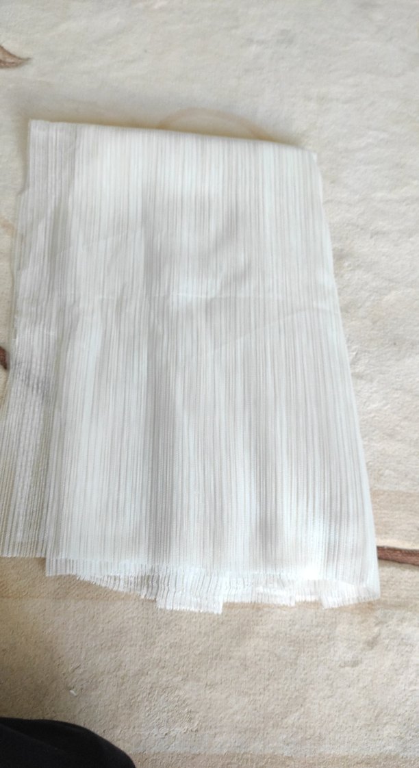 krem hafif dokulu kumaştan yapılmış bohem tarzı perde. Kumaşı yumuşak ve ışığın nazikçe geçmesine izin verir. eni 7 metreden 5 santim eksik boy uzunluğu 102 altın renkli simli