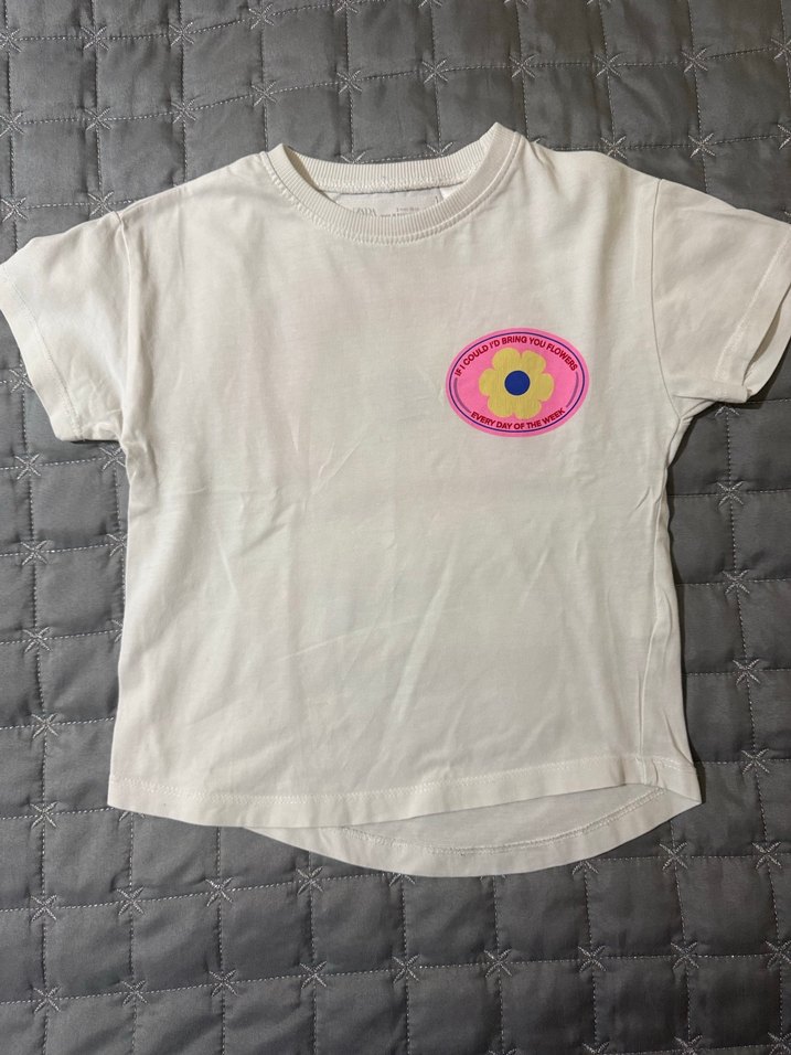 Pamuklu, beyaz bohem tarzı kız tişörtü, kısa kollu ve yuvarlak yakalıdır. Gevşek kesimi ve pastel çiçek baskısıyla rahat ve şık görünür.