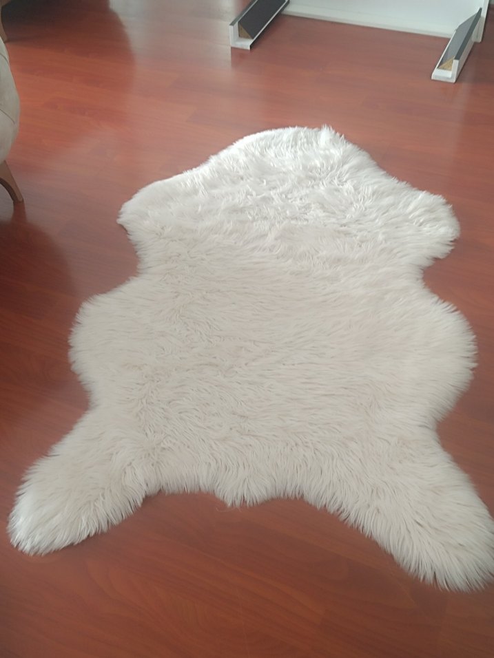 Düz beyaz, bohem tarzda yumuşak ve peluş halı, odanıza sıcaklık katıyor.